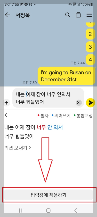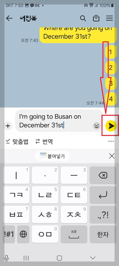 메시지를 보낼 때도 번역 기능을 활용할 수 있습니다.
