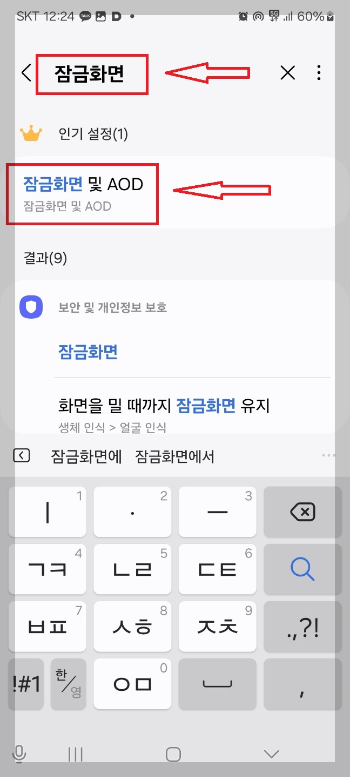 2. 잠금 화면 및 AOD를 검색해 주시고 잠금 화면 및 AOD를 선택해 주십니다.