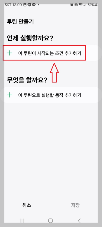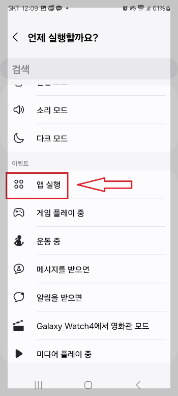 3. 이 루틴이 시작되는 조건 추가하기를 선택하고 아래로 내려서 앱 실행을 선택해 줍니다.