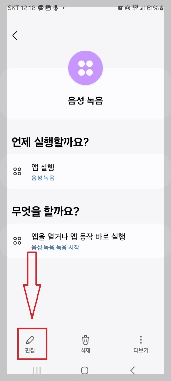 2. 우측 아래 루틴을 선택하시고 조금 전 만들어둔 음성 녹음 루틴을 선택