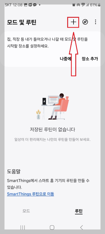 2. 모드 및 루틴을 선택하고 우측 상단에 더하기 모양을 눌러줍니다.