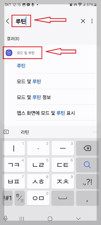 1. 설정에서 루틴을 검색 후 모드 및 루틴을 선택
