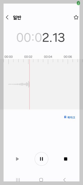 그럼 전원 버튼을 두번 누르시면 바로 녹음앱 실행과 동시에 녹음이 되시는 걸 확인하실 수 있습니다.