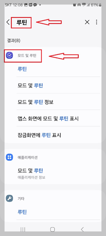 1. 설정에서 루틴을 검색 후 모드 및 루틴을 선택