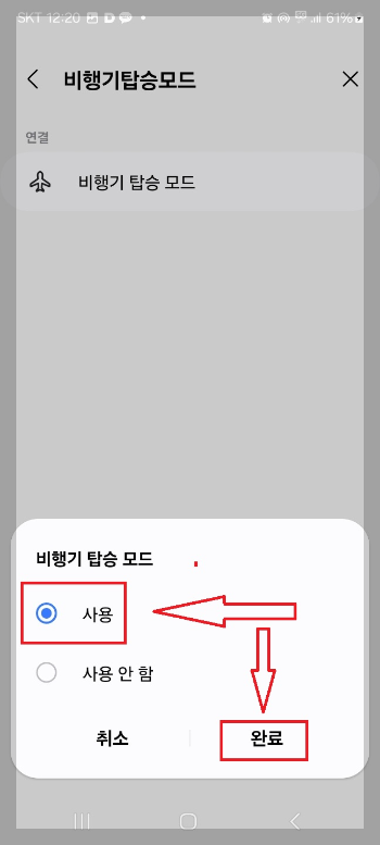 4. 사용하기로 설정을 하시고 완료를 눌러줍니다.