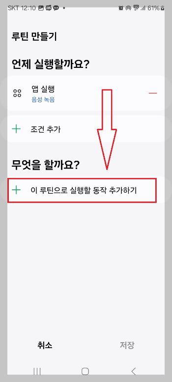 3. 이 루틴이 시작되는 조건 추가하기를 선택하고 아래로 내려서 앱 실행을 선택해 줍니다.