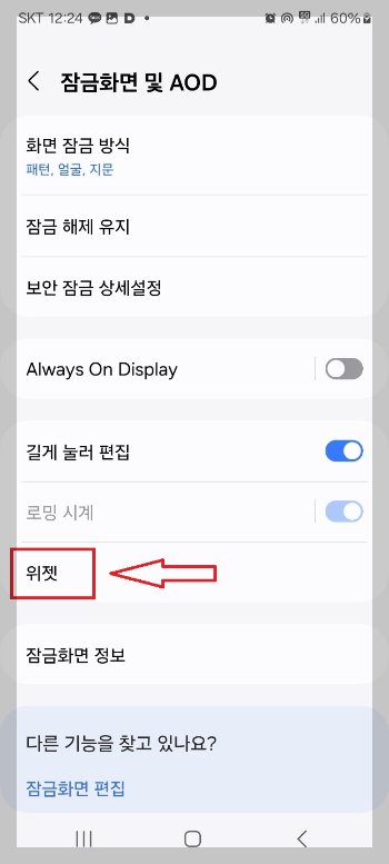 2. 잠금 화면 및 AOD를 검색해 주시고 잠금 화면 및 AOD를 선택해 주십니다.